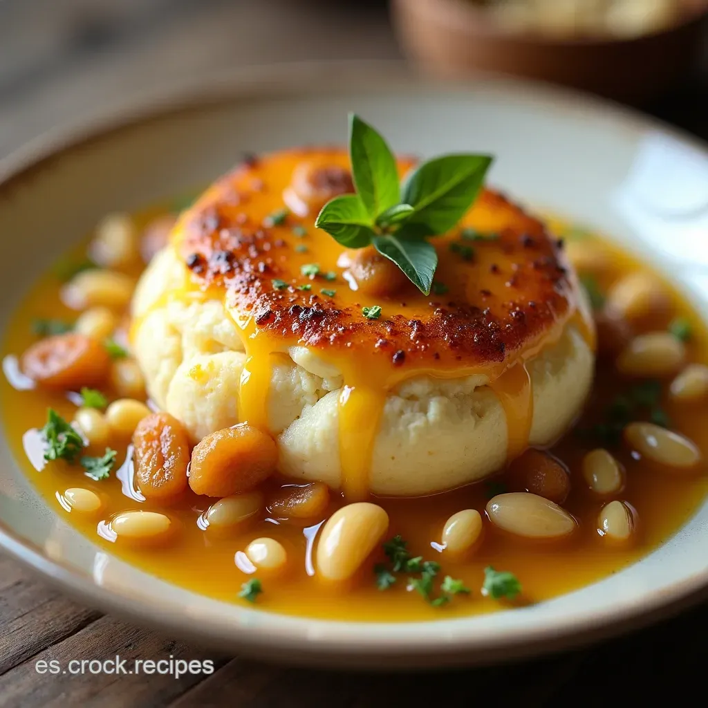Este plato captura la esencia de una bienvenida cálida, transformando una humilde rueda de queso en un centro de mesa irresistible. Su encanto radica en el contraste absoluto: la corteza de hojaldre, dorada y crujiente como una joya recién horneada, alberga un interior líquido, untuoso y profundamente reconfortante.