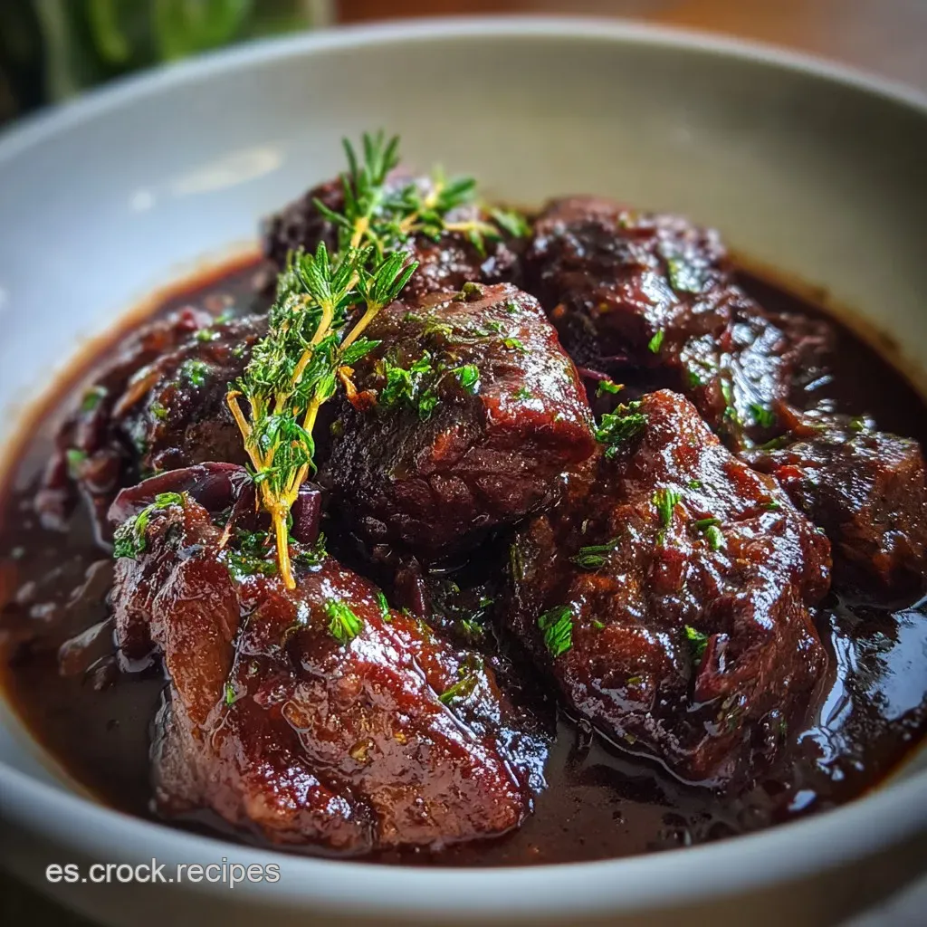 El sabor es profundo, rico y ligeramente dulce. La carne se vuelve increíblemente tierna y melosa, absorbiendo los matices del vino tinto y las verduras. Es un sabor reconfortante y complejo.