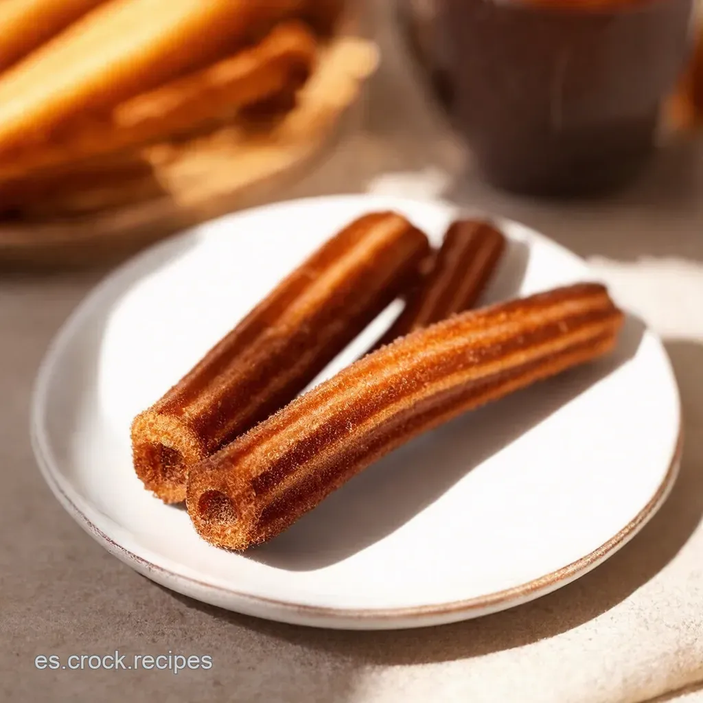 Presentación de Pro: Espolvorea un poco de azúcar glas sobre los churros recién hechos. ¡Quedan de revista! Si quieres ir a tope, usa una manga pastelera para decorar el plato con un poco de chocolate extra.