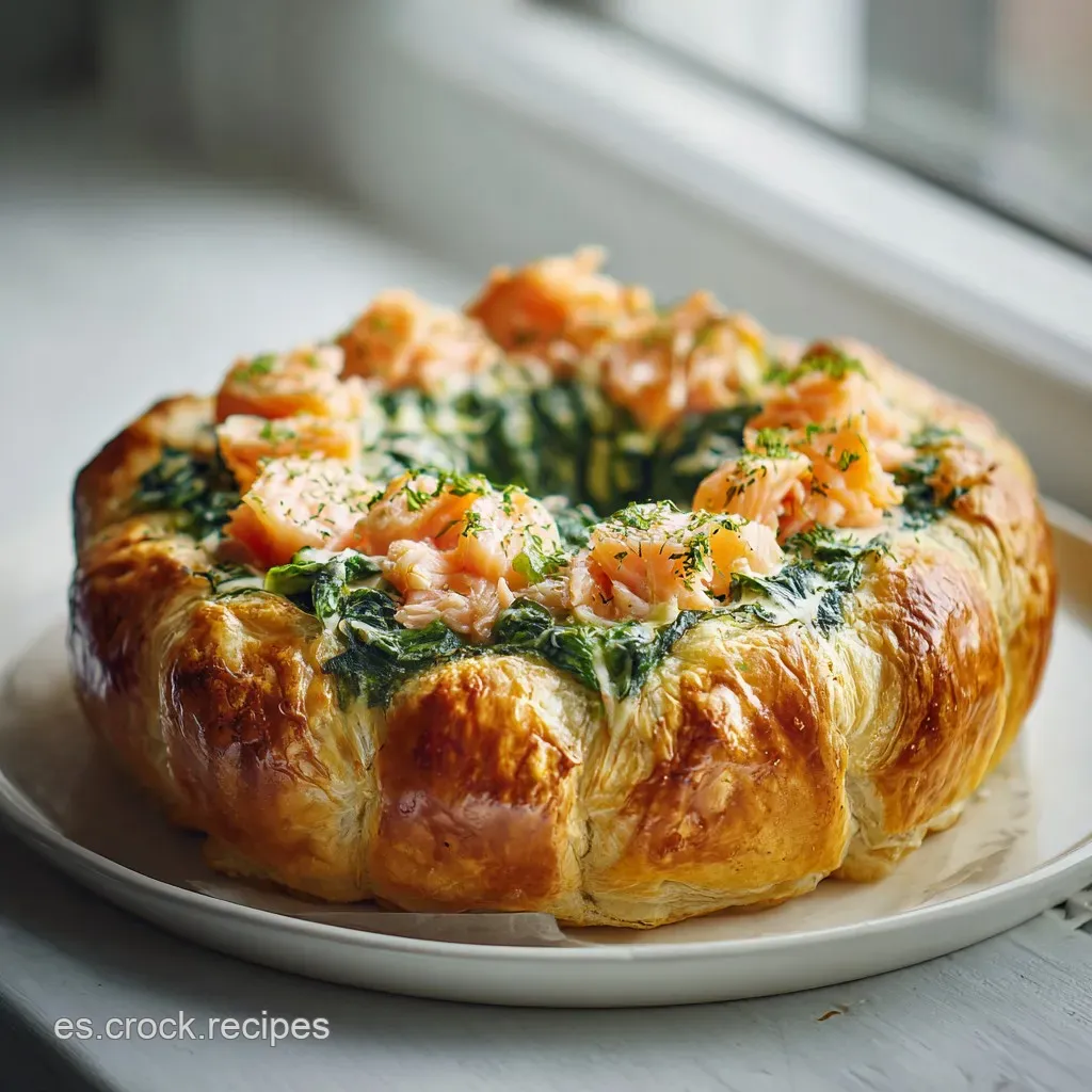 Lo que realmente importa es el contraste: ese choque entre el calor del horno y la masa fría que crea mil láminas de sabor. Esta corona de salmón y espinacas es el ejemplo claro de que con un par de láminas de masa compradas y un buen queso crema, puedes dejar a todos con la boca abierta mientras tú disfrutas de tu copa de vino.