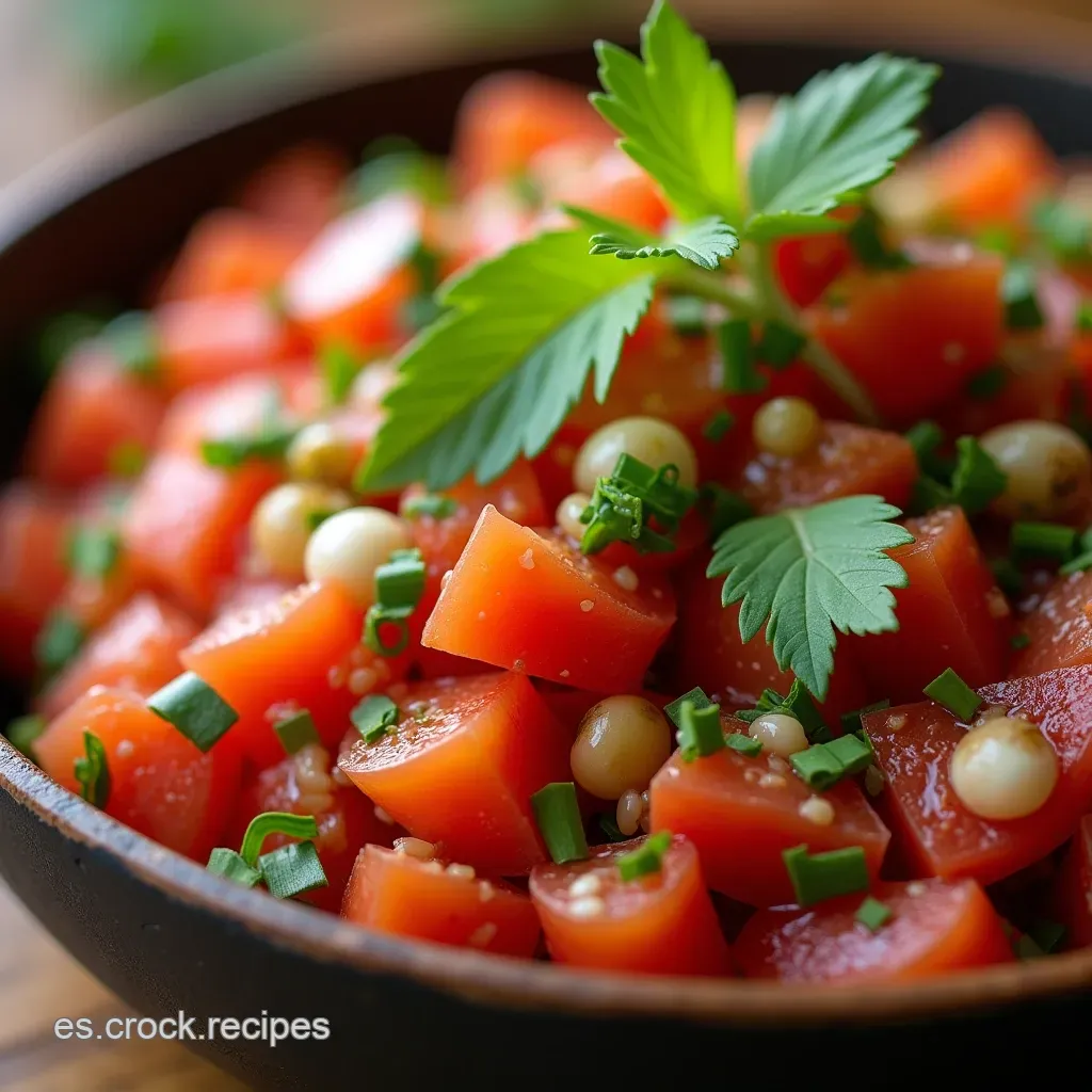 Mezclamos suavemente con una cuchara de madera para no romper los delicados cubos de tomate. Es vital probar antes de servir. ¿Necesita más brillo? Un poco más de lima. ¿Sabe plano? Añade otra pizca de sal.