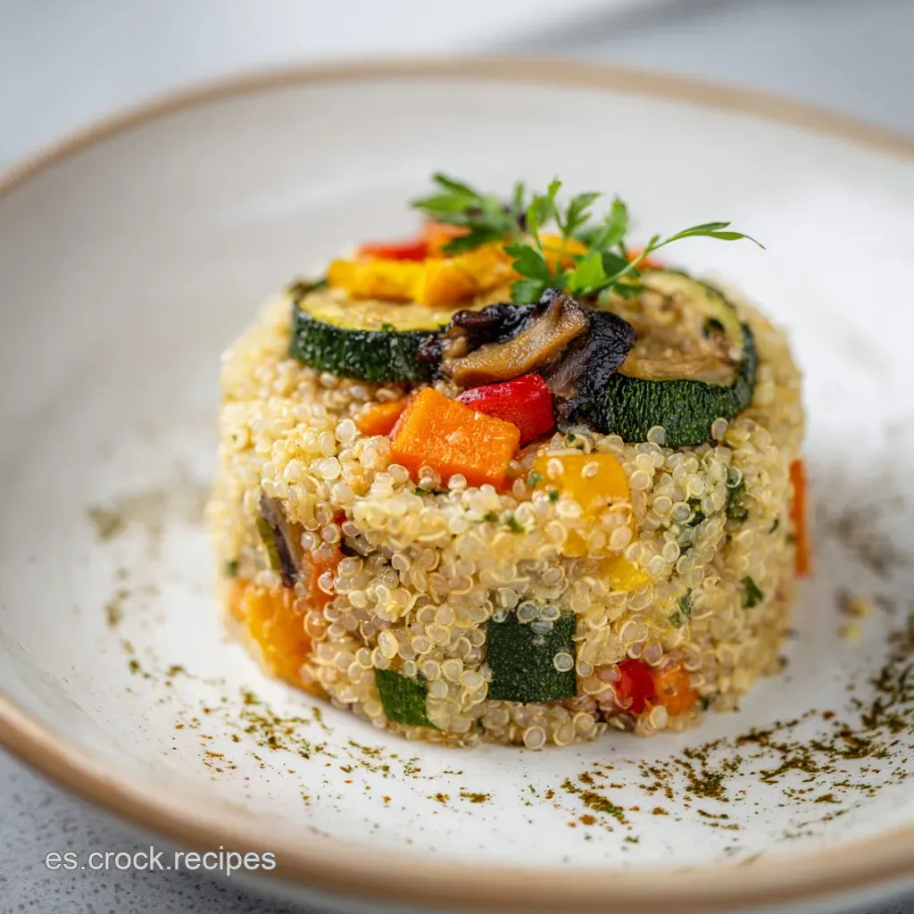 La presentación visual es el primer paso para una digestión armoniosa. Para servir esta quinoa con verduras, utiliza platos hondos de cerámica con tonos neutros que hagan resaltar los colores primarios de los vegetales.