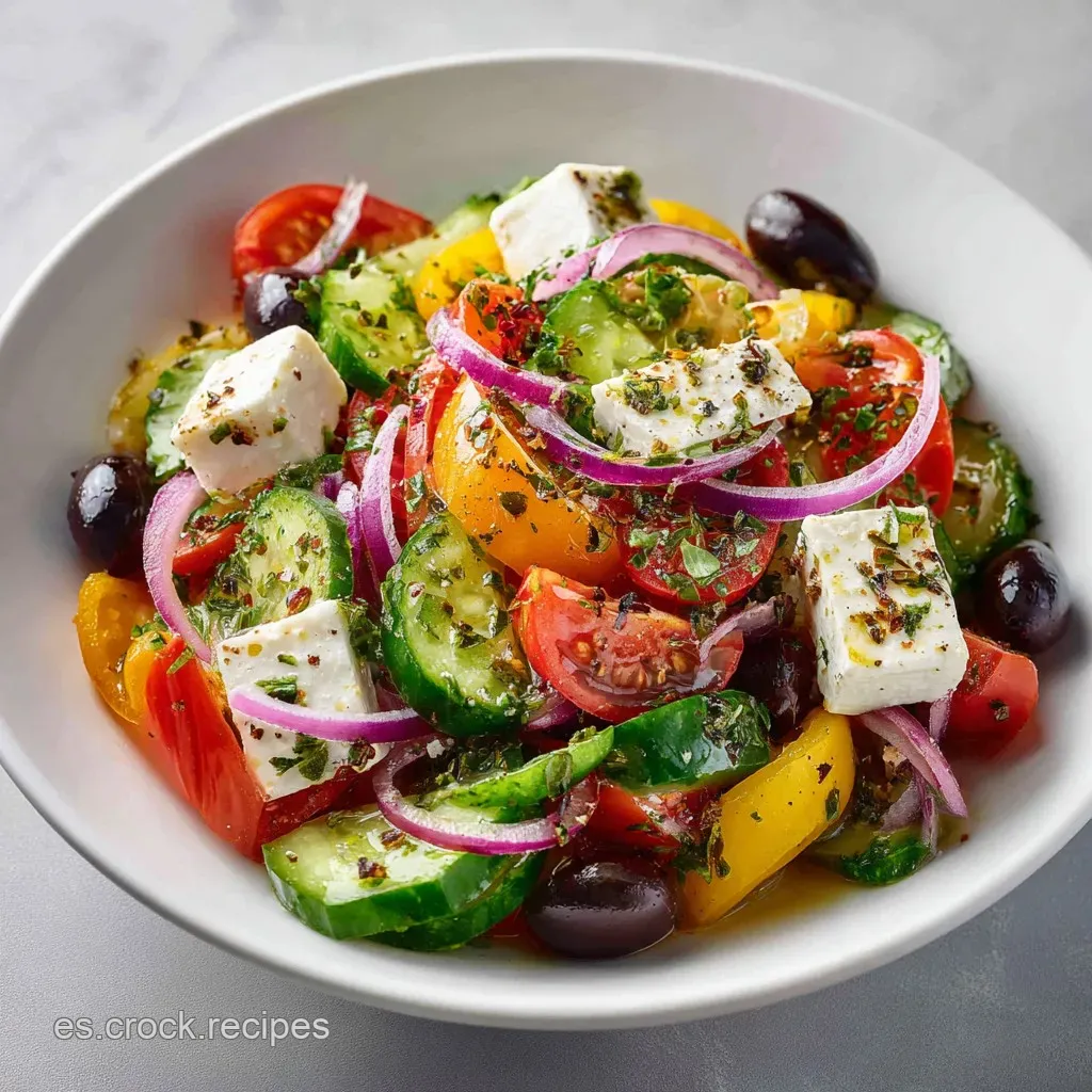 Sí, puedes adaptarla, pero perderá su esencia. El queso feta es un componente definitorio de la ensalada Griega, aportando su salinidad y textura. Sin embargo, podrías sustituirlo por queso de cabra o tofu marinado si buscas una alternativa vegana.